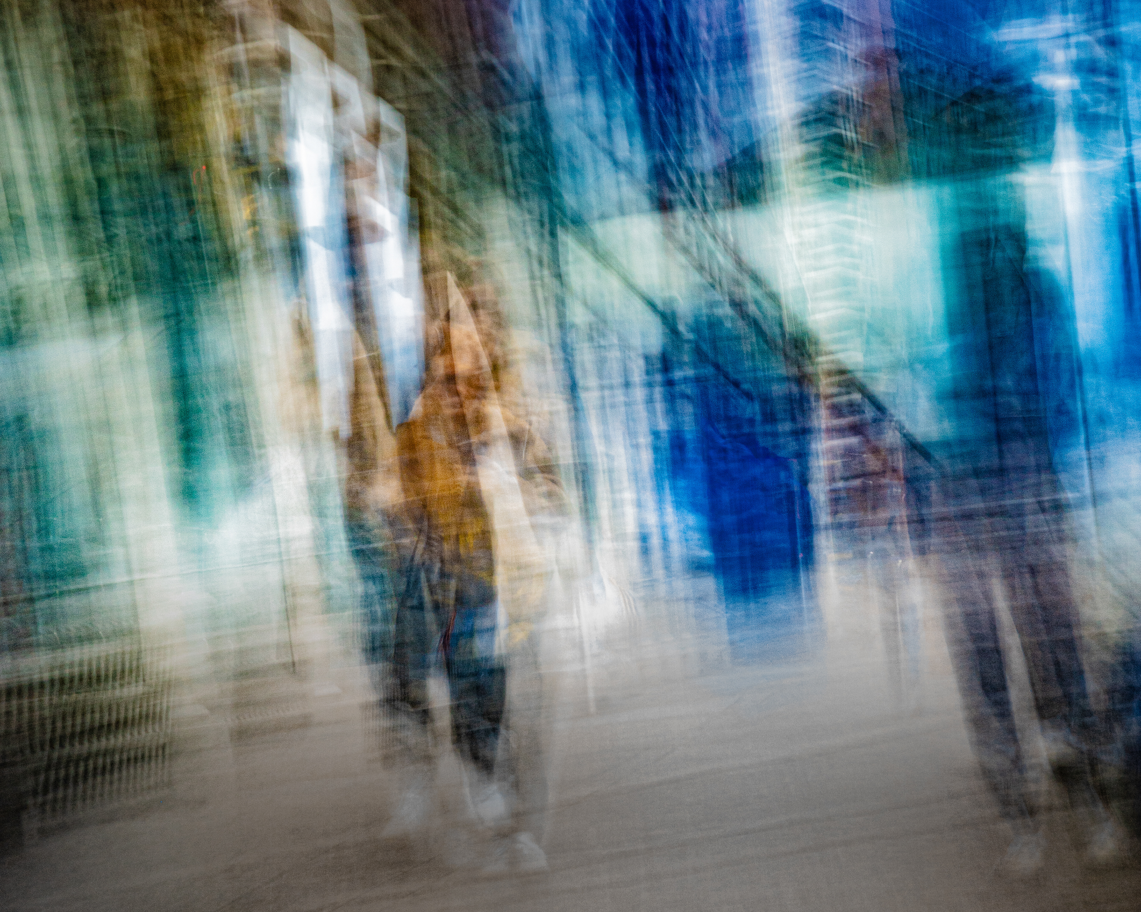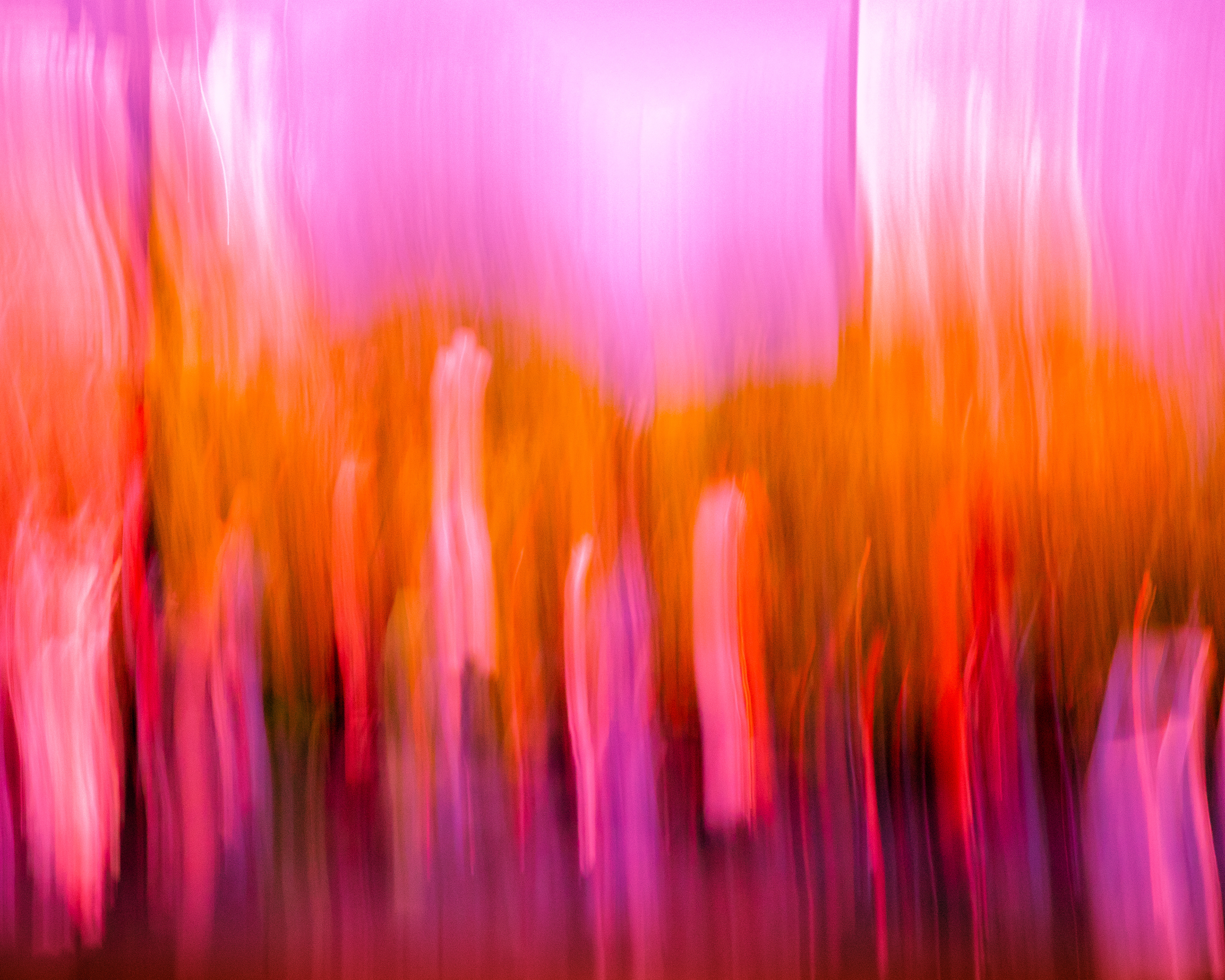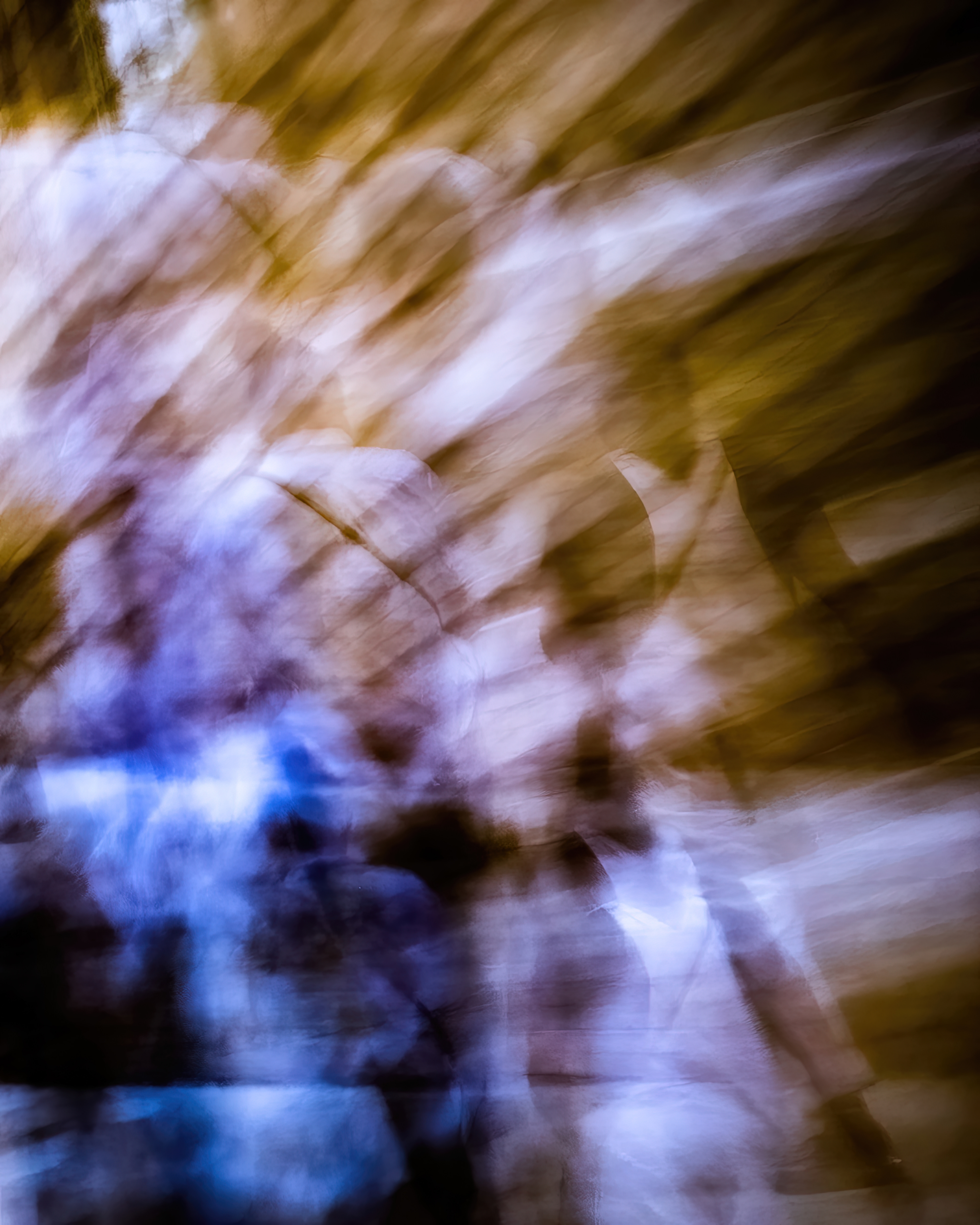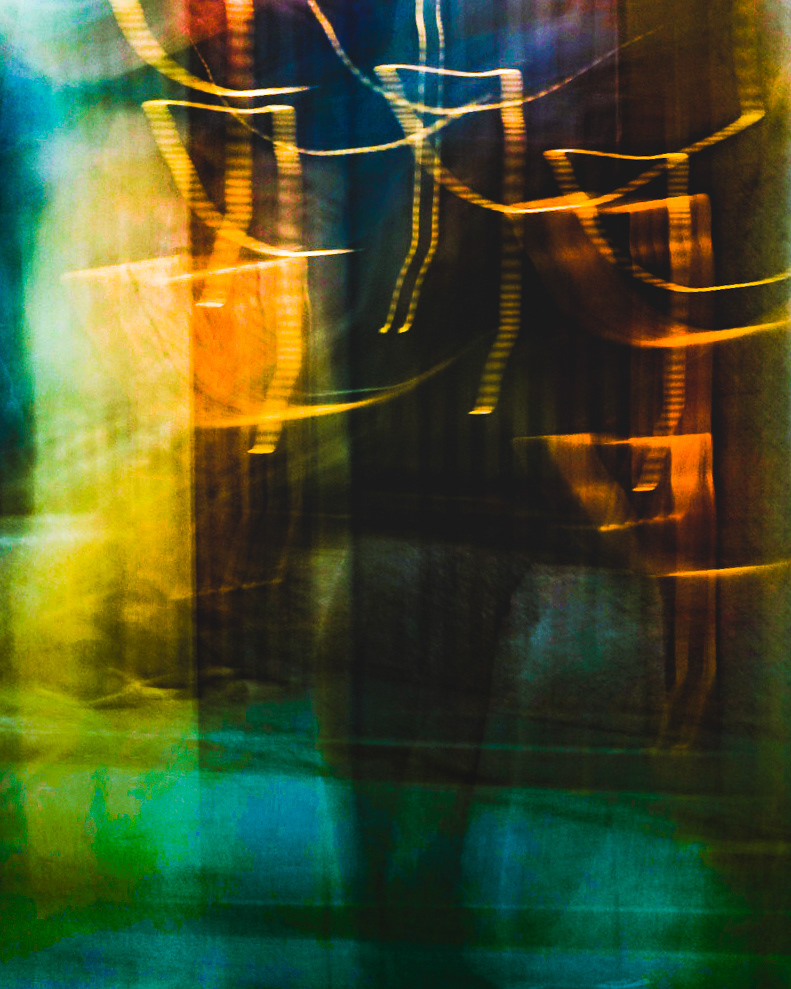 Gestural camera movement takes an expressionist approach to abstract photography. In contrast to its near cousin, intentional camera movement, the camera is hand-held -- free to go where the artists aesthetic impulse dictates.