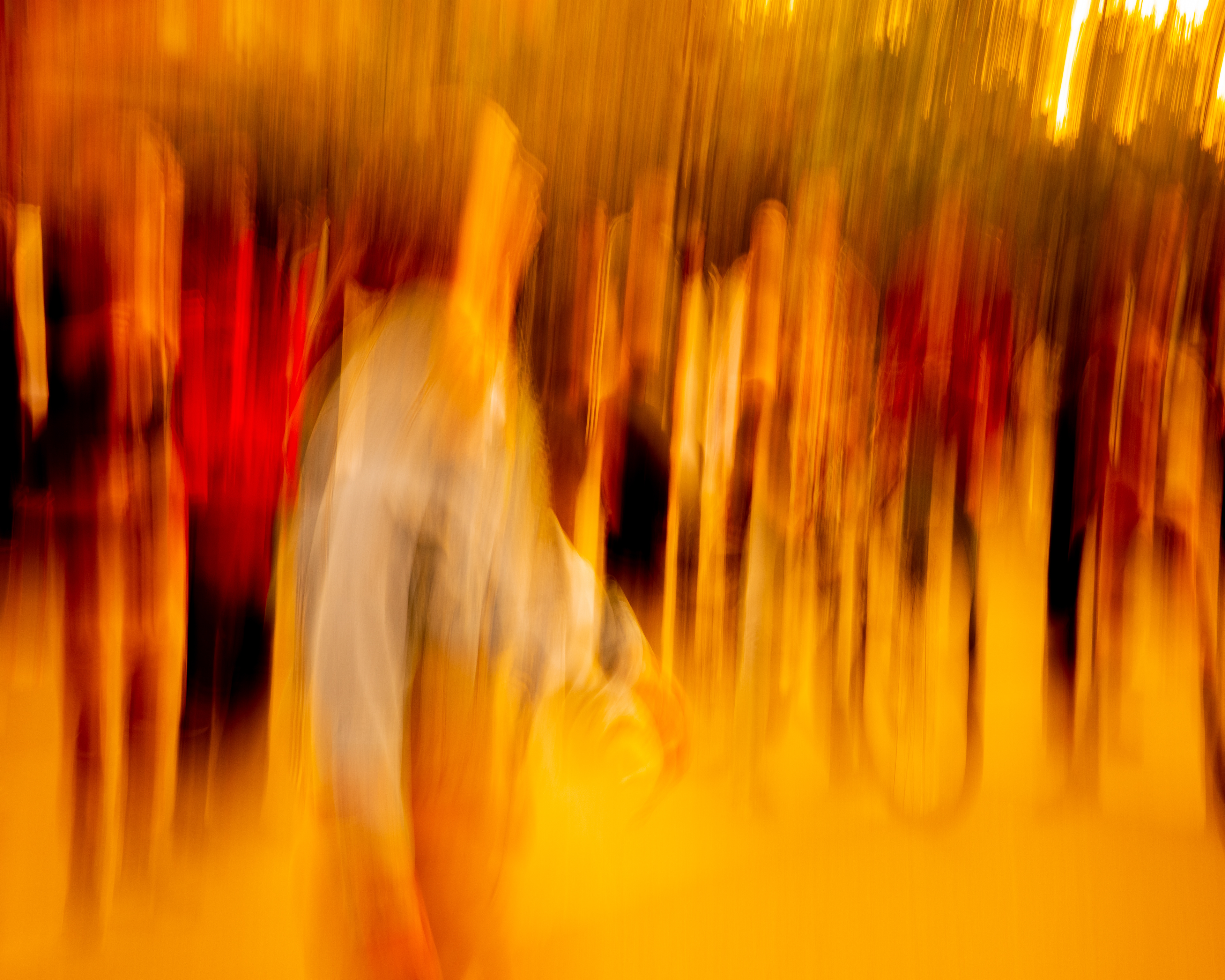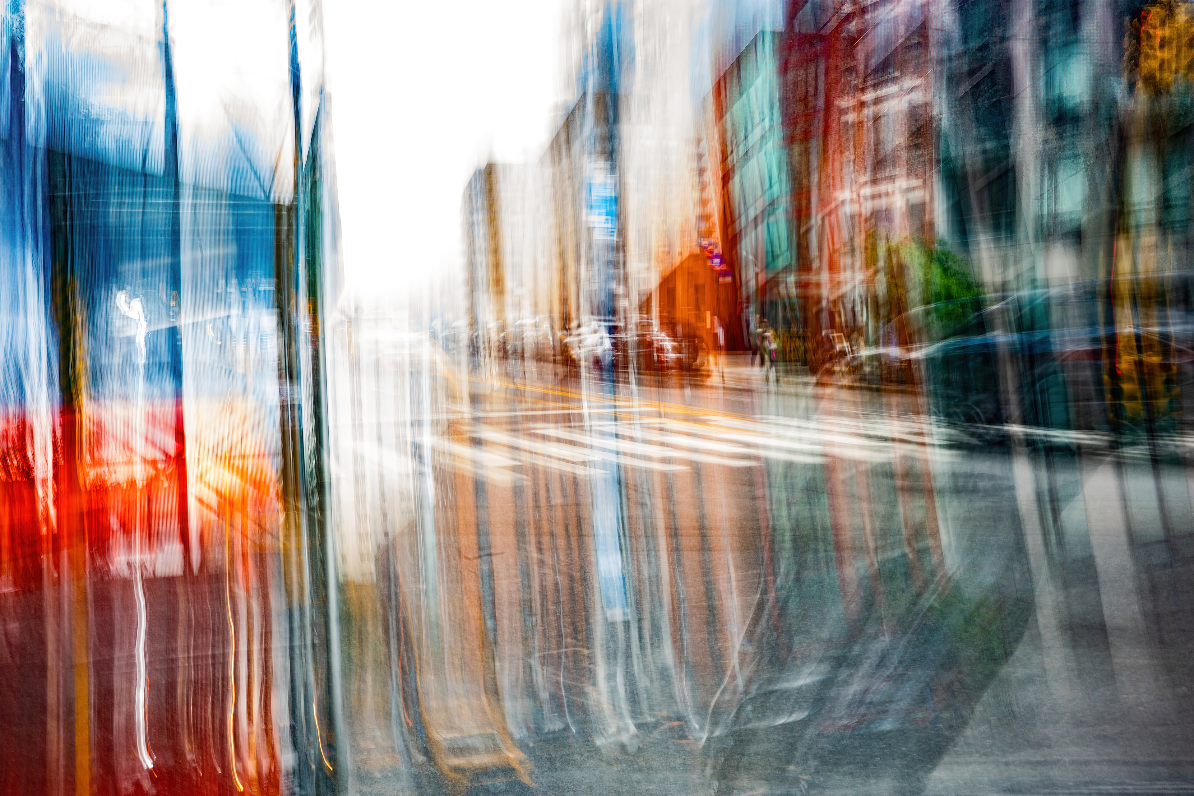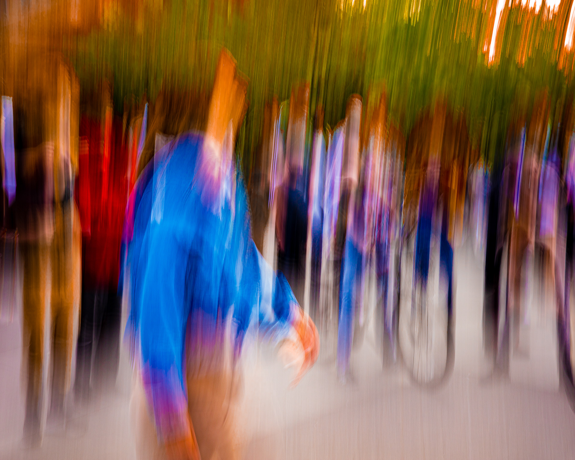 Gestural camera movement takes an expressionist approach to abstract photography. In contrast to its near cousin, intentional camera movement, the camera is hand-held -- free to go where the artists aesthetic impulse dictates.